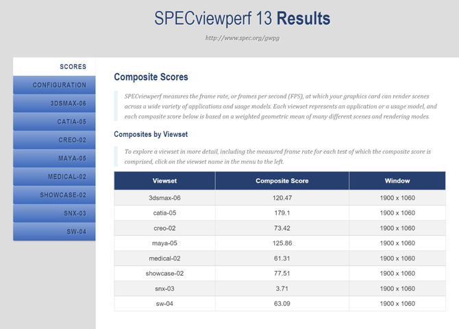 SPECviewperf 13模拟了各种作图、渲染软件的性能测试,最终的综合得分表现还是不错的。