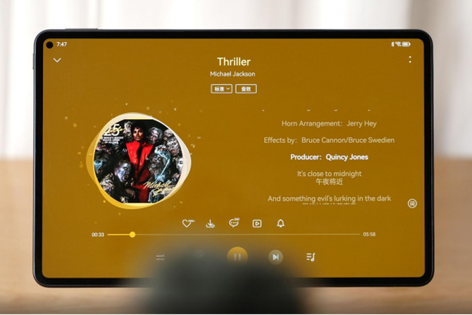 华为MatePad Pro在轻薄的机身内塞入了6 组喇叭( 2组定制的高音喇叭和4组低音喇叭),最大响度高达80dB。 与以往有点不同,华为MatePad Pro还引入了自家的HUAWEI SOUND音频, 有着高保真音质的同时声音细节与层次也更丰富还原。