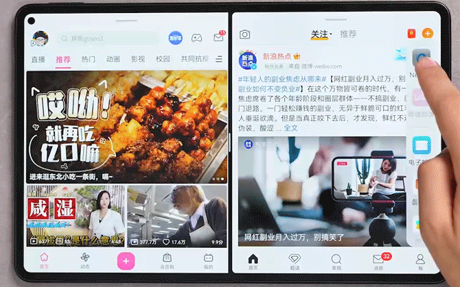 智慧多窗也新增了快滑手势,向坐上滑即可分屏,向右上滑即可变为小窗。小窗状态下,上滑即可全屏,侧滑收起,下滑关闭,目前智慧多窗最多支持四个窗口同时开启,两个分屏,两个小窗。