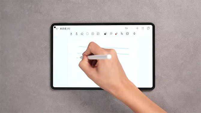 接着我们再来聊聊,可能大部分人购买平板的“目的”-生产力。首先我们来看看华为MatePad Pro的新配件。新的手写笔全新的华为M-Pencil(第二代)雪域白除了有了雪域白的新配色,搭配华为MatePad Pro触控会更精确,2ms的低时延,在划线偏差上也有了一定的优化提升,书写的阻尼感也会更接近纸笔,这里我们直接画一画试试效果。