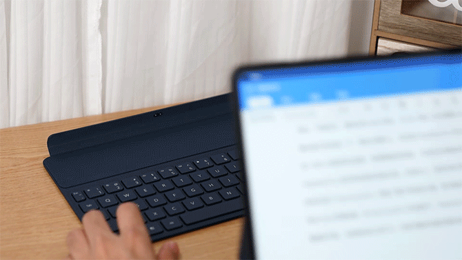 键盘的键程提升到了1.5mm,键帽也来到了15mm,平时用来码码字手感也还不错,不过我个人更喜欢大键盘,其实华为也可以考虑出一个带触摸版更大一些的分体式键盘,这样后续搭配PC应用引擎加持的PC版WPS也更加方便嘛,平时的办公姿势也能更多样。