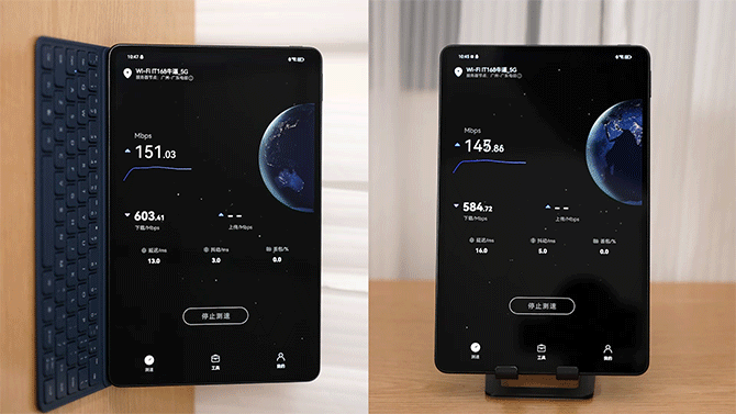 中框采用镁合金,在保持机身硬度的同时进一步减薄减重,5.9mm的厚度,449g的重量,这应该就是现在最轻的11英寸平板。微弧的边框设计也更加贴合手掌,无论是单手还是双手都有着舒适的握持。