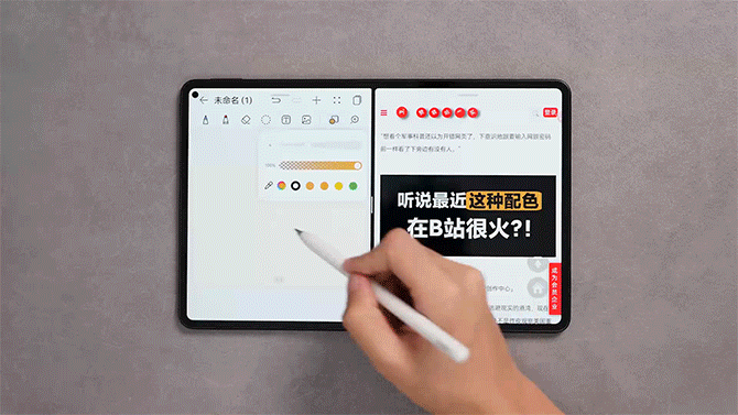 搭配全新的华为M-Pencil(第二代)雪域白,可以在不同的应用内取色,像分屏、小窗这些都支持,甚至还可以在协同的手机窗口上取色,后续还会开放对第三方软件的跨应用取色,世界那么大,我想去你那取个颜色用用。