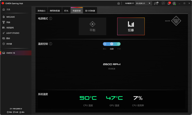 在内置的OMEN Gaming Hub中,开启狂暴模式后,这块RTX 3060版本显卡可实现最高140W满功耗性能输出。可见,OMEN暗影精灵8 Pro游戏本的性能非常“残暴”。