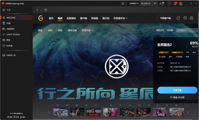 玩家在OMEN Gaming Hub的WeGame专区就能下载到该款游戏。这也是OMEN Gaming Hub与腾讯WeGame合作的一部分,以一站式的服务方便玩家下载、体验各种游戏,并且还提供了OGH用户专属优惠。