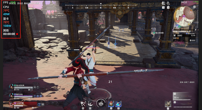 即便是在战斗时,也能达到110FP+,显卡功耗维持在100W+,最大可达130W。