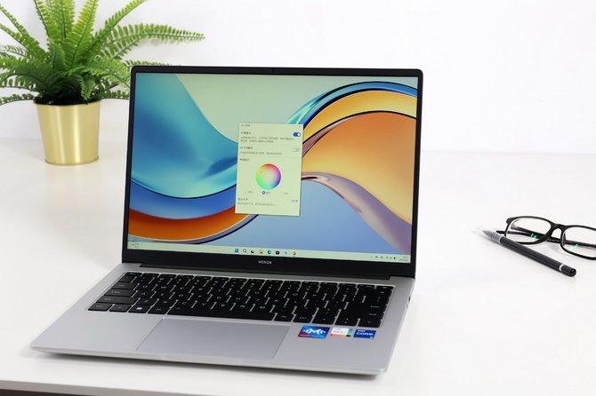 荣耀MagicBook X 系列笔记本还提供了“护眼模式”和“电子书模式”。在开启护眼模式后蓝光减少时,红色和绿色的光谱融合会呈现出一种趋黄的色彩,而这种偏暖的色调有效降低蓝光光源能量,降低入眼辐射,保护眼睛。在系统桌面上鼠标右键单击的菜单里选择显示管理,开启“护眼模式”,在下面还有“默认”、“暖色”和“冷色”三种色温调节的选项。通常来说,建议用户在阅读文档、搜索等场景下使用“暖色”色温,而在图片浏览、视频播放等场景下使用“冷色”色温。由于每个人对色彩的喜好和感知都不一样,所以荣耀还提供了色温精细调节的按钮,可以在护眼模式开启的条件下,将色温调节到更适合自己的显示效果。
