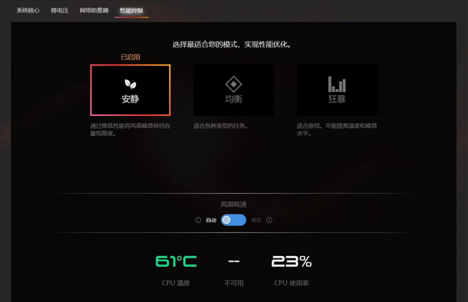 为了能够让玩家更好的在工作和娱乐中自由切换,可以使用惠普游戏控制中心这个自带软件进行切换。比如需要一场酣畅淋漓的游戏,那么开启狂暴游戏,该款游戏本就像一个西装暴徒一样,榨干所有性能服务于游戏运行,保证了流畅度和稳定性。而选择安静或者均衡,则更适合办公或者学习,一键切换十分方便。