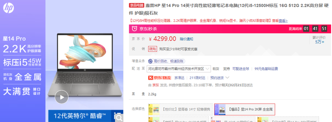 目前这款产品在电商平台直降1200元,4299元就能入手,反正课代表已经划了重点。如果你现在想选择一台便携性出色、性能优秀的轻薄本的话,惠普星14 Pro是个非常不错的选择。