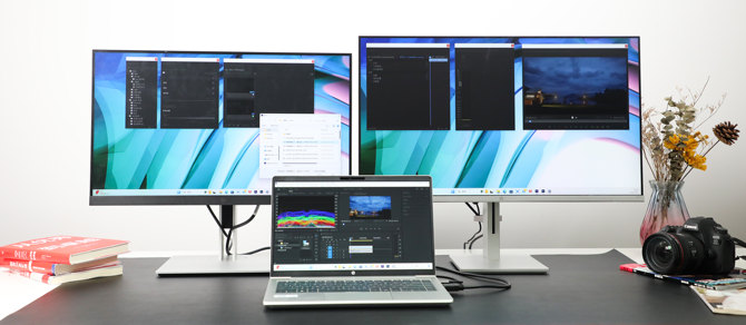 惠普战66搭载的这款Type-C接口还支持4K60FPS视频输出功能,既能传输数据,还能传输视频信号,配合HDMI接口,能够实现3联屏效果,让我们可以同时拓展额外2个4K60FPS高清显示器,大大提升用户可视范围,极大地提升了我们的创作、办公效率。
