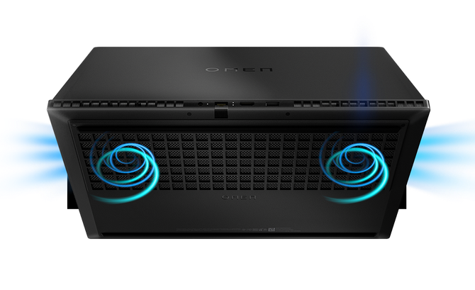 OMEN暗影精灵9也对酷凉风暴散热技术进行了升级,内置的两个Y型风扇叶片密度达到120片以上,进一步提升了空气流通;配合两进四出六风道设计,相同风噪(42dbA)下通风量提升29%。