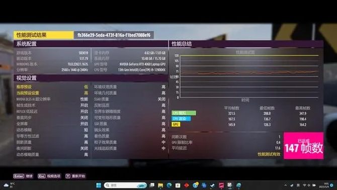 在《地平线5》这款光追游戏试玩中,笔者将分辨率直接拉到2.5K,并且画质调到高,OMEN暗影精灵9 还能跑出147帧的分数,其流畅程度大大超出了预期。