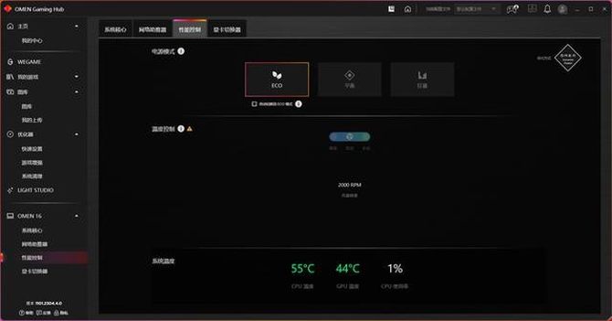 对于大家都熟知的OMEN Gaming Hub软件也进行了升级,新增ECO节能模式,这个模式会降低处理器睿频,并且将屏幕刷新率降低到60Hz,能够明显提升整机续航,在特定的需要长续航的场景中,能够将整机使用时间延长10-20%。