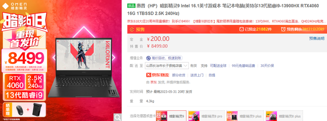 最后再来聊聊玩家关心的价格,一般来说i9-13900HX处理器、RTX 4060显卡、16GB内存、1TB固态硬盘、2.5K QHD 240Hz屏幕配置的游戏本,基本售价都在近万元左右。而OMEN暗影精灵9在618期间重回首发价格,仅8499元即可拥有,并且晒单还赠送鼠包套装,就更加超值了。最近想要入手游戏本的玩家们,千万别错过这台综合素质非常高的游戏本。