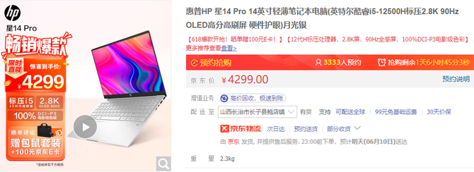 618期间,这款配置的星Book Pro 14高性能轻薄本售价为4799元,同样是近期好价格,值得加入购物车。