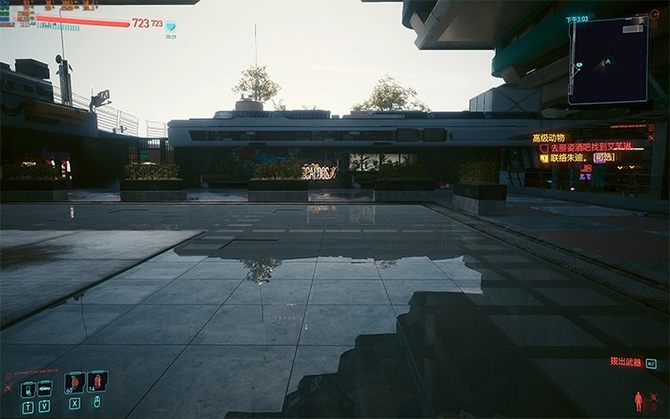 开启光追技术后,游戏画面的真实感受瞬间提升,如地面的倒影与实际物体轮廓相吻合,还有刚刚下过雨的湿润地面展现的也非常自然,确实能够大大提升游戏的沉浸感。