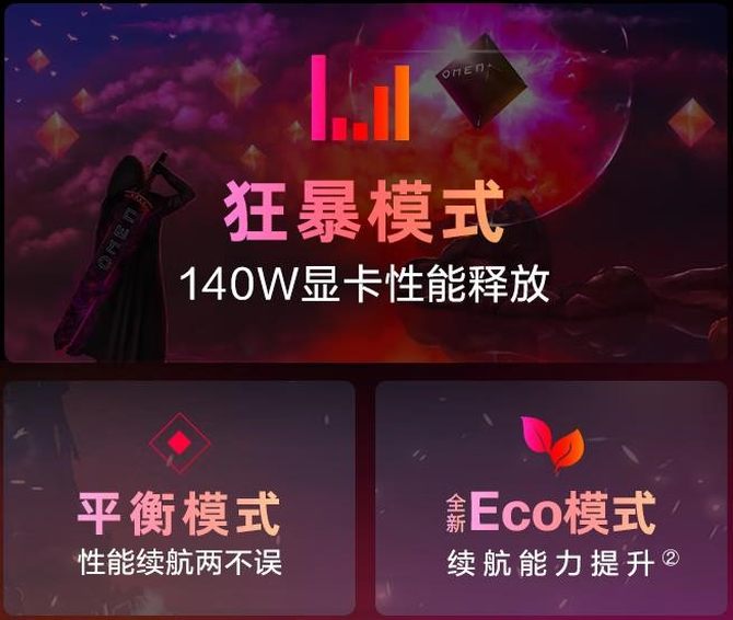 而且相比上一代OMEN暗影精灵系列,全新的OMEN暗影精灵9还在OMEN Gaming Hub中增加了一个ECO模式,可以实现在系统层级限制CPU/GPU睿频,同时实现一键调整屏幕刷新率至60Hz,使其续航能力大幅提升,同时带来更加安静的使用环境,在用于观看视频、文案处理及网页浏览等低负载场景,相比均衡模式可提升续航10~20%。