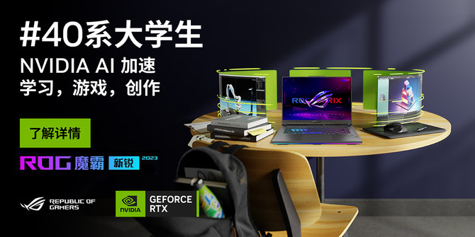以今年推出的ROG魔霸新锐2023游戏本为例,就搭载了NVIDIA Ada Lovelace 架构的GeForce RTXTM 4060 笔记本电脑 GPU,这些设备能够加快 STEM 应用的运行速度,让您更快速地完成课堂作业;其次,能够借助由 AI 提供支持的逼真画面效果,为最 新游戏提供强效助力;而且能够访问专属的 NVIDIA Studio 平台,使用一整套创意应用和工具。此外,Max-Q 技术还可以延长电池续航时间、降低噪音,并提升效能,打造适合学生使用的更轻薄机型。