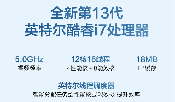 配置方面采用最 新的13代英特尔酷睿i5-13500H标压处理器,16GB双通道内存及512GB固态硬盘。