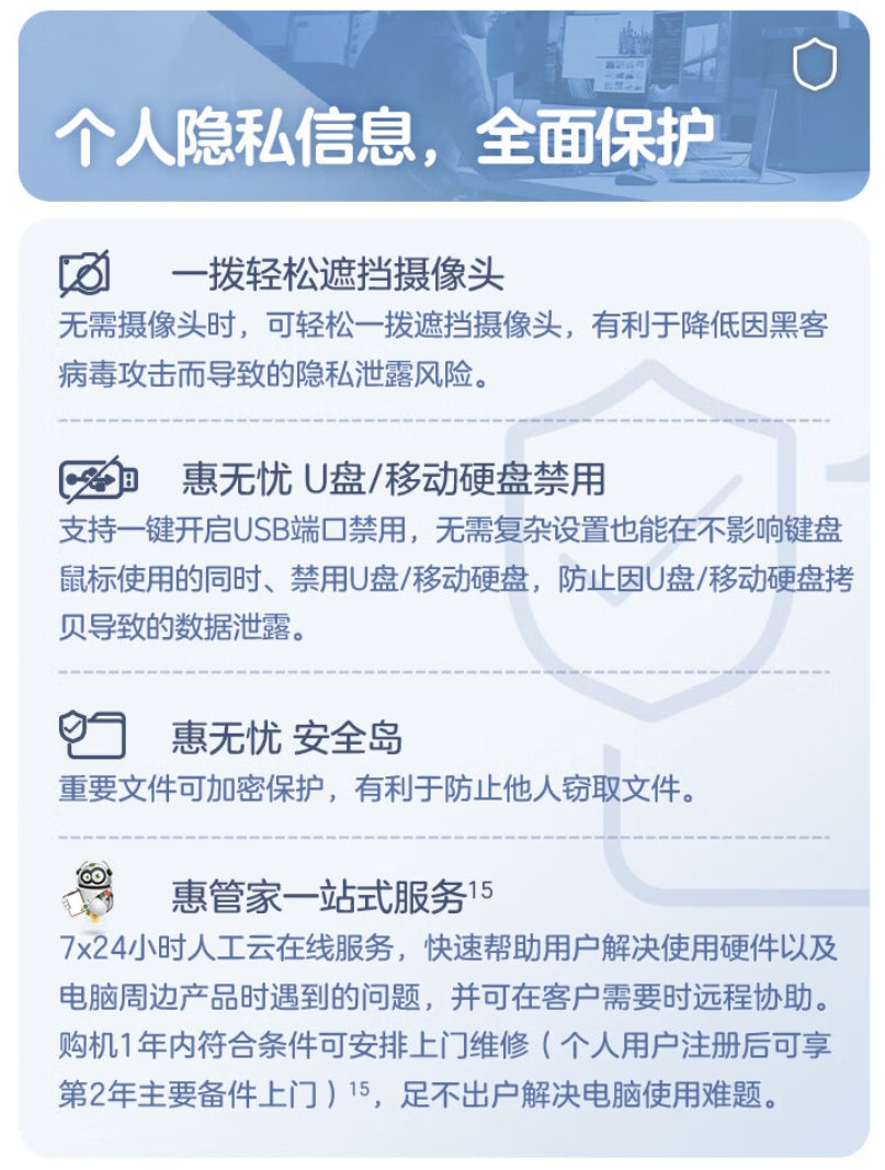 更为重要的是,在使用电脑中,因为意外不小心进水、跌落摔坏、压坏等的故障,惠普还为用户赠送价值579元的1年意外险,在1年内的意外损坏,也是可以免费维修的。