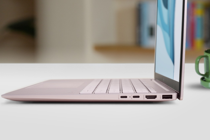 接口方面,惠普星Book Pro 14锐龙版的布局也非常合理,比如在机身两侧都有USB接口,便于连接键盘、鼠标,或者使用移动硬盘等。机身的右侧提供了1个USB-A 10Gbps接口,1个HDMI 2.1接口,此外还有两个USB-C接口,并且支持充电、数据传输,以及视频输出功能,可轻松实现三联屏功能。