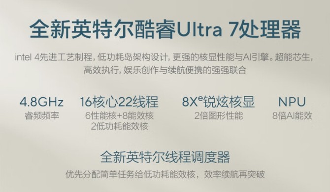 配置:酷睿Ultra 7 155 + 16GB + 1TB SSD,2.5K QHD防眩光屏