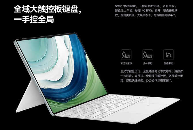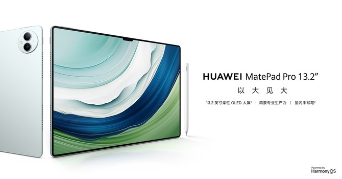 HUAWEI MatePad Pro 13.2 英寸是9月25日华为官方发布的平板十年问鼎之作,其搭载了一块13.2英寸超大柔性OLED屏幕,更以3.4mm的边框宽度实现了惊人的94%的屏占比,是迄今平板业界屏占比最 高的平板。