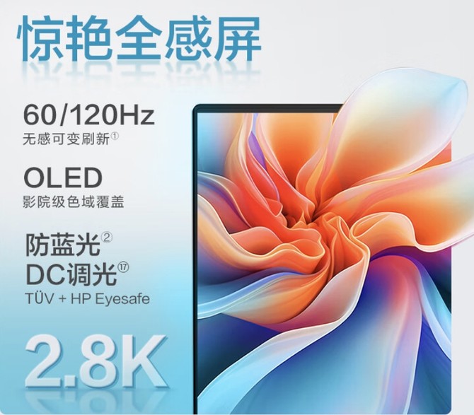 星Book Pro 14 锐龙版的屏幕同样令人惊叹,2.8K OLED的超清屏支持VRR可变刷新率,可选48Hz、60Hz、120Hz、60/120Hz 自适应调整4档,根据不同使用需求AI智能调节,实现清晰度和续航的完 美平衡匹配,游戏时也能有效消除画面撕裂和卡顿现象,提升使用体验。此外,支持100%DCI-P3广色域,HDR模式下支持10bit色深显示,饱和度更高、色彩范围更大、亮度更高,非常适合观看好莱坞级的大片。而且在最 高500nits(HDR状态)亮度下,即使在户外浏览资料,文字依然清晰。 此外,这块屏幕还通过德国莱茵TÜV和EyeSafe双重护眼认证,硬件级专业防护,长时间办公眼部也不会疲劳。