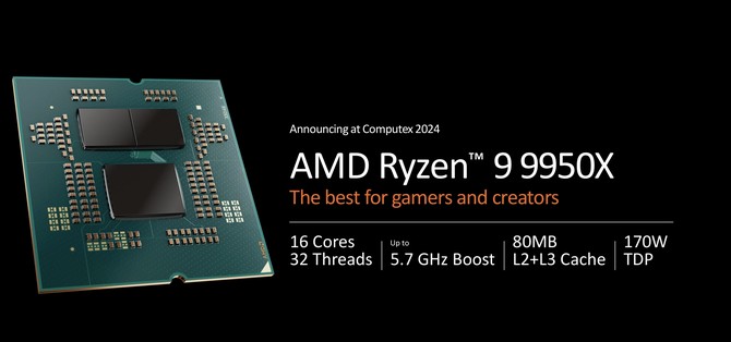 此次宣布的锐龙 9000系列处理器包括锐龙9 9950X、锐龙9 9900X 、锐龙7 9700X、锐龙5 9600X共4个型号。顶 级型号的锐龙9 9950X更加适合游戏玩家和创作者,其拥有16核心、32线程,80MB L2+L3 缓存,最大频率5.7GHz,默认TDP功耗170W。