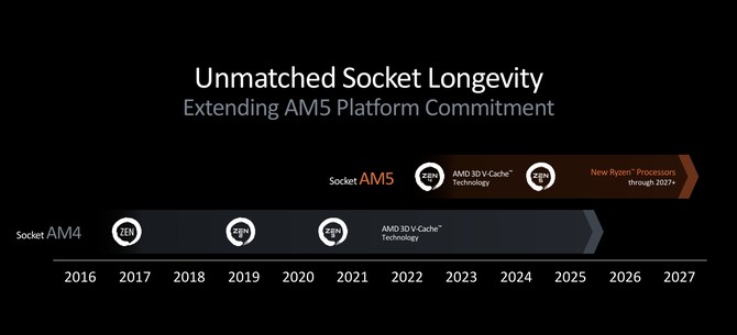 AMD官方还表示,新的锐龙9000系列处理器以及更新的锐龙5000XT系列处理器将在今年的7月份后陆续上市,此外,针对AM4 平台的支持到2025年中,而AM5 平台的支持则至2027年后。