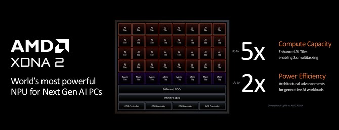 继续来看看移动端的处理器,此次推出的锐龙AI 300系列,也是第三代AMD Ryzen AI,采用了Zen 5架构,内置XDNA2 NPU,GPU则升级为RDNA 3.5 显卡,号称面向下一代 AI PC / Copilot+ PC的最 强处理器。