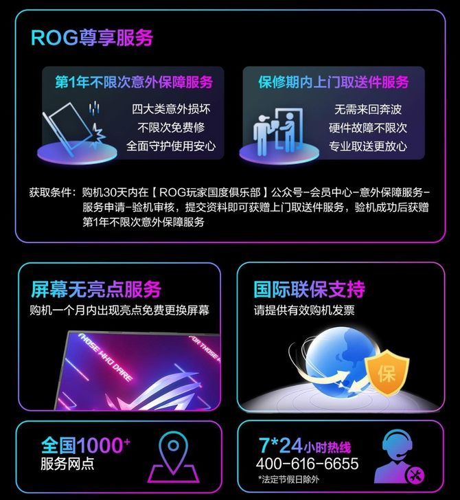 所以,用户在购买了ROG魔霸新锐后,不仅可以享受硬核性能带来的流畅游戏体验,使用中的后顾之忧,ROG也做的更加贴心,线上7*24小时热线,线下全国1000+服务网点,以及上门服务等,可以说是面面俱到,只为护航用户安心。