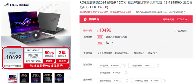 如今正值毕业季,不少即将跨入大学的新生或即将走向工作岗位的,都会买一个新的笔记本来用于学习、办公,尤其是漫长的暑假里,一款硬核的游戏本,可以无限畅玩,无拘无束。此外,各商家也都在假期里推出自己的爆款,不仅产品好,价格也很香。如果你还犹豫不决,这款ROG魔霸新锐可一定不能错过,硬件上搭载了酷睿i9-13980HX旗舰级处理器,配备了RTX 4060独立显卡,而且还有16英寸星云屏,目前在华硕官网的售价仅10499元,现在购机并晒单还可赠送ROG背包、返现50元,除了价格优惠,还有2年官方保修,一年意外险等惊喜好礼!