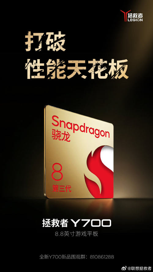 20日消息,继此前官宣#拯救者Y700 8寸电竞平板# 将至之后,@联想拯救者 官微继续展示全新拯救者Y700 游戏平板信息,海报显示新品平板采用8.8英寸屏,将搭载骁龙8 Gen3处理器,拥有更强大性能。