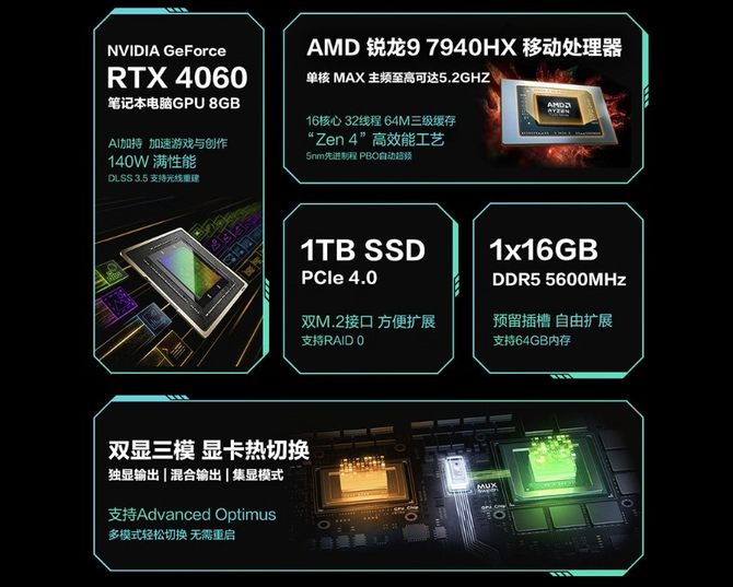屏幕方面,华硕天选5 Pro锐龙版同样表现出色。它搭载了一块16英寸的IPS广视角屏幕,四边窄边框设计加上16:10的黄金屏幕比例,使得屏占比高达90%。同时,2.5K的高分辨率、165Hz的高刷新率、400nits的高亮度以及100%的sRGB色域,让画面的细节显示更加清晰,色彩更加真实。无论是内容创作、视频编辑还是畅玩3A游戏,都能带来丝滑流畅的视觉体验。硬件配置上,华硕天选5 Pro锐龙版更是毫不逊色。它搭载了AMD锐龙9 7940HX旗舰级处理器,采用Zen4架构和5nm先进制程,拥有16核心32线程,单核主频至高可达5.2GHz,高速缓存达到80MB。同时,还支持PBO自动超频,CPU性能释放可达90W。这样的硬件配置,足以应对各种高性能需求。