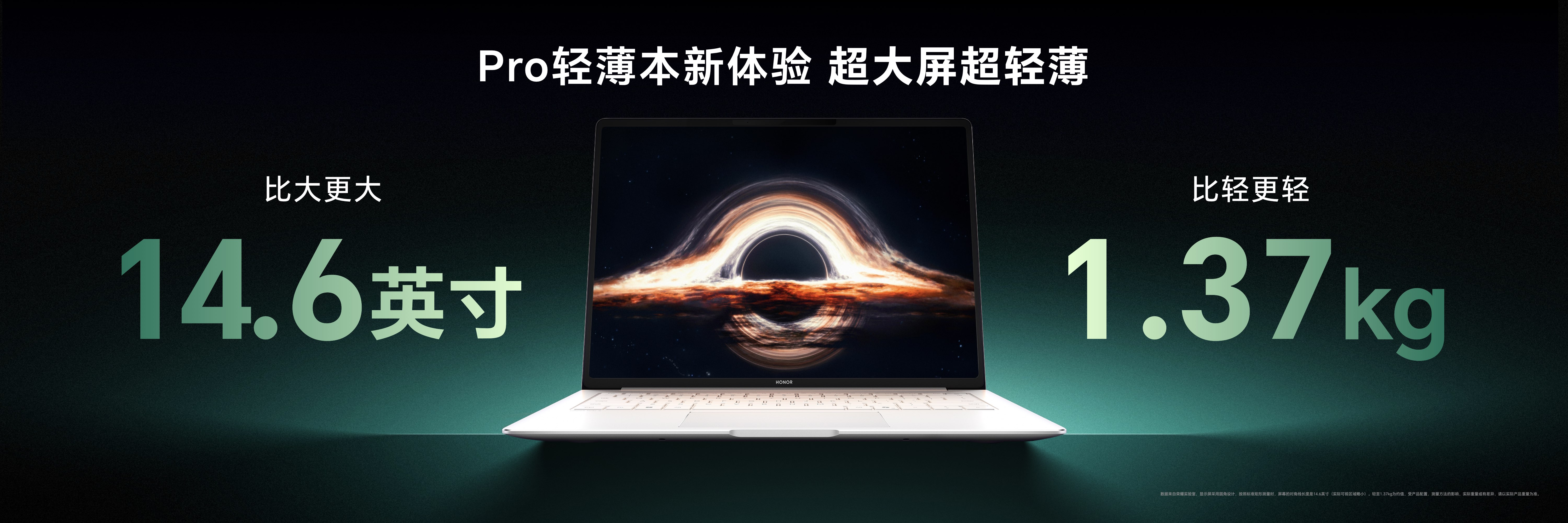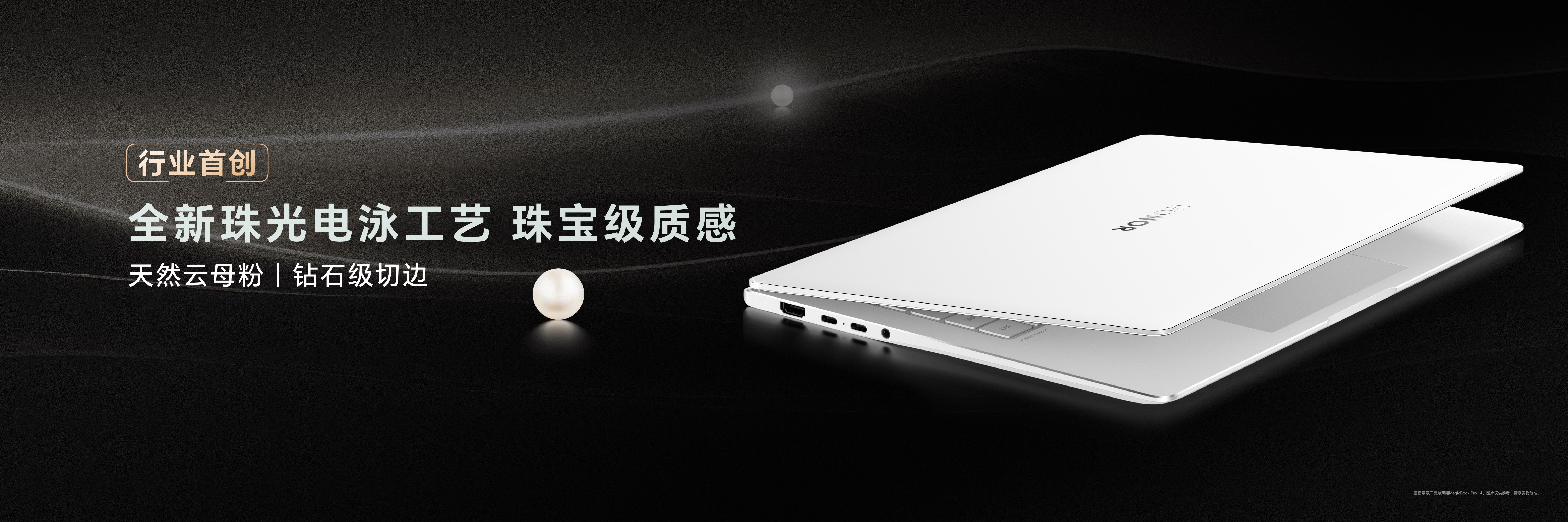 秉持对美学设计的极致追求,荣耀MagicBook Pro 14采用蔓叶腰身曲线、圆润双切线设计,带来极致纤薄观感的同时,更有温润舒适的手感;拥有星辰灰、极光绿以及月光白三种配色,其中月光白行业首创全新珠光电泳工艺,在白色色漆中注入了珠光粉,让机身白皙的同时在不同角度还有闪烁的珠粉,更具生命力。通过创新材料减重和拓扑优化设计,整机减重281g,重量轻至1.37kg,带来超大屏超轻薄的Pro新体验。