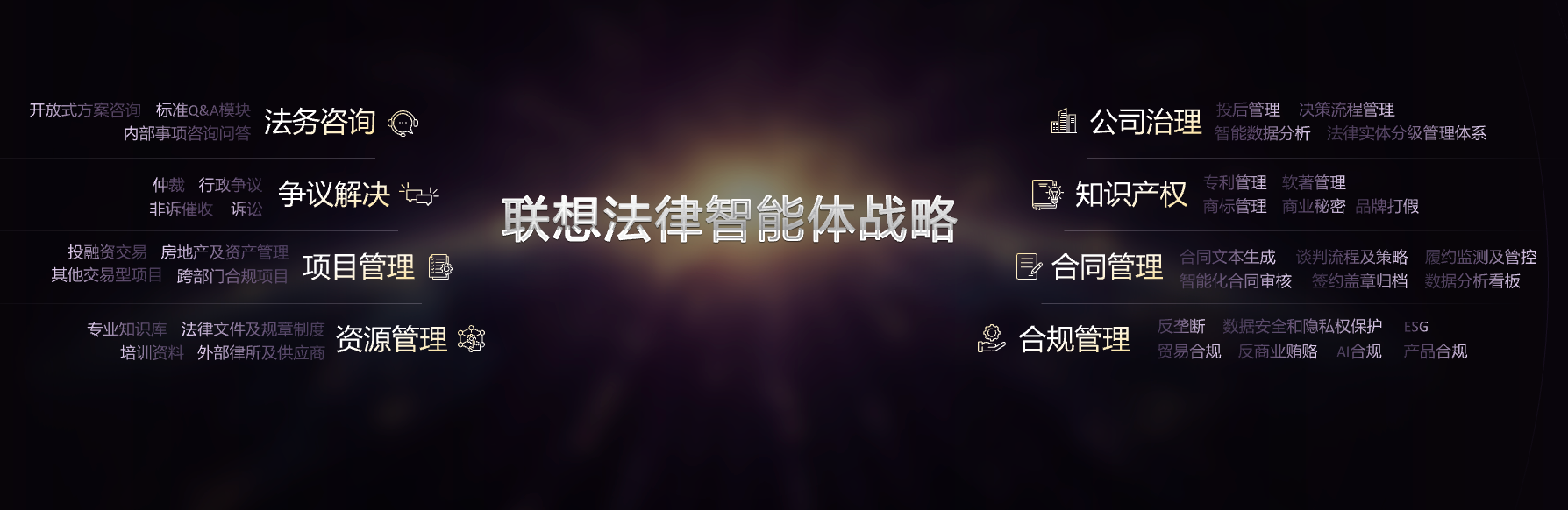 随着时代发展与社会进步,公众对司法实践的关注度持续提升,对法治建设的期待也日益深化。4月28日,联想Think AI终端2025春季发布会在京成功举办。会上,联想法律智能体战略重磅发布,具有争议解决、法务咨询、合同管理、合规管理、知识产权、公司治理、资源管理、项目管理八大功能模块,将为法律领域从业者带来高效、精准、安全的法律工作体验。