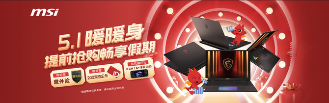 强悍的性能表现,全面的规格配置,搭载RTX50系GPU的微星游戏本新品,在首发的一个月中可谓爆款频出,颇受玩家们的青睐! 随着五一黄金周的到来,为了让更多玩家体验到微星游本的次世代游戏体验,微星游戏本京东自营官方旗舰店开启促销,心动不如行动!