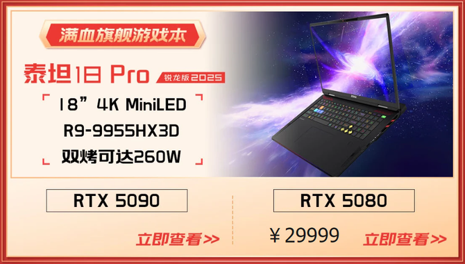 泰坦18 Pro 锐龙版 2025(RTX5080):29999元,国补到手价27999元