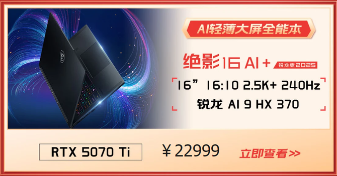 微星绝影16 AI+ 锐龙版2025:22999元,国补到手价20999