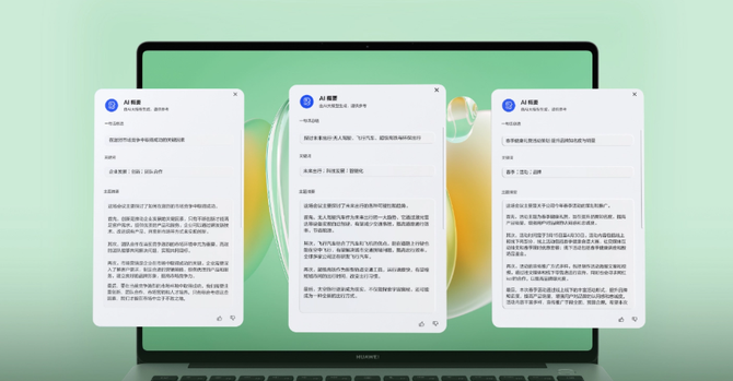 华为MateBook X Pro Linux版换装Windows系统后,在功能体验上同样拥有智慧搜索、AI概要、多屏协同、超级中转站等完整功能。尤其是在会议或课堂场景中,AI概要功能可以帮助你从长时间的录音或视频中快速提炼关键信息,自动生成“一句话摘要+关键词+全文概述”,大大减轻整理负担,让你专注于深度学习和核心输出。
