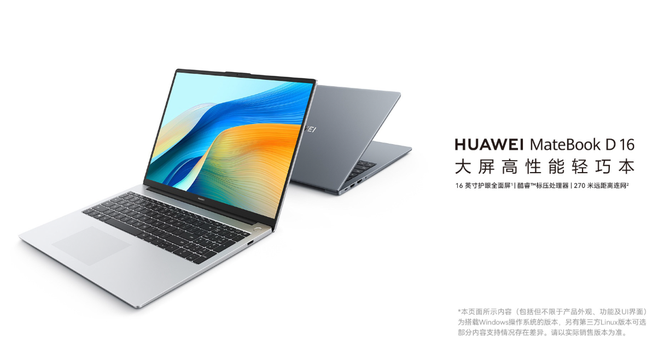 华为MateBook D 16 Linux版:至高优惠200元 + 国家补贴20%,到手价3280元起,SE款低至2800元起;