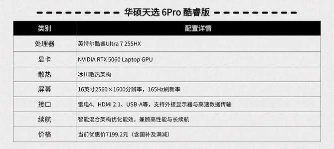 如此一来华硕天选6 Pro酷睿版就是一个不错的选择,魔幻青配色男女通杀,配置够顶价格还香!