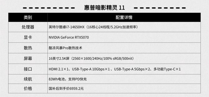 比如这台惠普暗影精灵11,它采用的是i7-14650HX处理器,配备的是RTX 5070笔记本电脑GPU,性能自然不用担心。