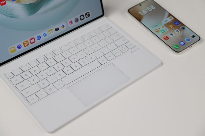 同时搭配智能磁吸键盘,并且具备保护套和支撑架的功能。键盘采用了全尺寸设计,与传统笔记本电脑的键盘相似,使用起来无需适应平板尺寸,立刻就能快速上手,华为星跃键盘采用创新磁力灵动轴设计,实现类PC开合体验,令用户使用过程简洁高效、丝滑连贯。