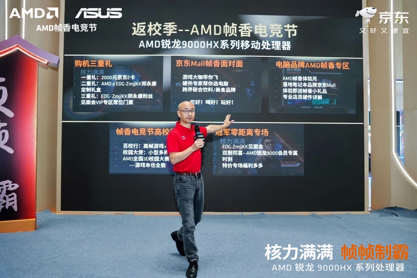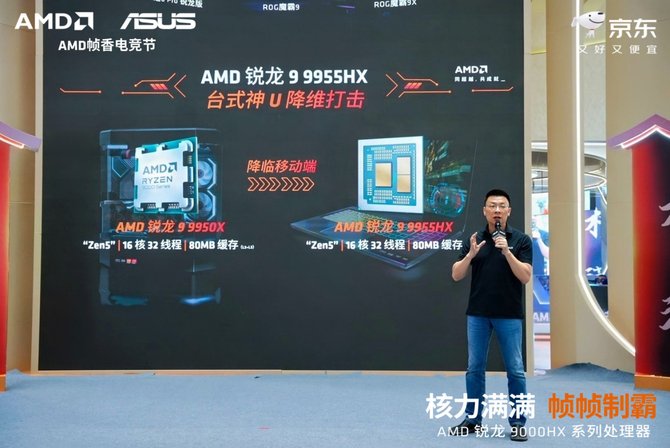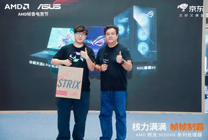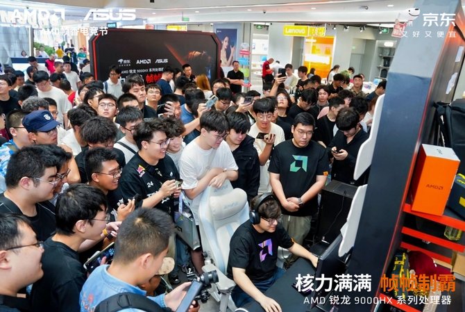 o 除线上购机福利外,AMD 更将电竞热情延伸至线下 —— 联合京东 Mall 打造沉浸式互动场景,邀请多位知名游戏大咖亲临现场,依托锐龙 9000HX/HX3D 系列处理器的高帧率输出、低延迟响应优势,打造属于玩家的线下电竞狂欢派对。