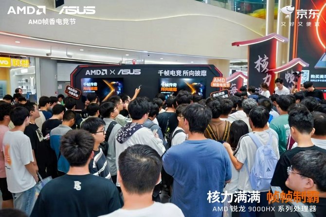 o AMD 还在多个京东 Mall笔记本店铺内专门铺设 “AMD 锐龙 9000HX” 电竞体验专区。凡前往专区体验的玩家,还可额外获取专属体验好礼,让更多人亲身领略 AMD 锐龙处理器的强悍实力。