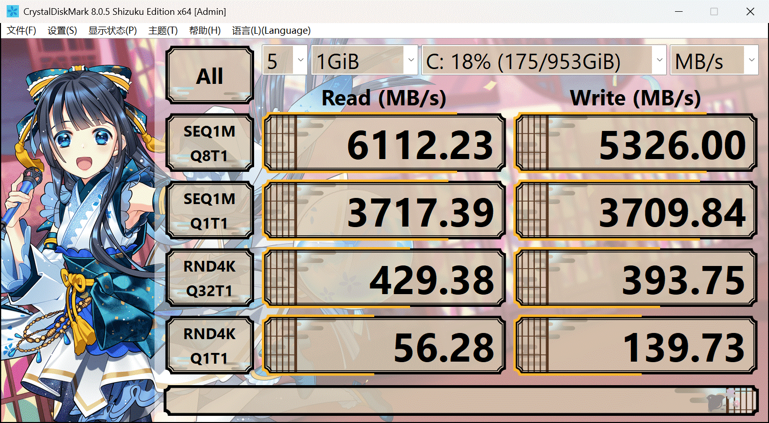 硬盘方面,SEAVIV AideaBook R14 搭配的 1TB PCIe 4.0 高速固态硬盘,使用 “Crystal DiskMark” 测得读取成绩为 5326 MB/s,写入成绩为 6112 MB/s,读写性能非常强悍,无论是日常文件读取,还是工作中大型文件的拷贝,都能快速完成,保障工作效率。