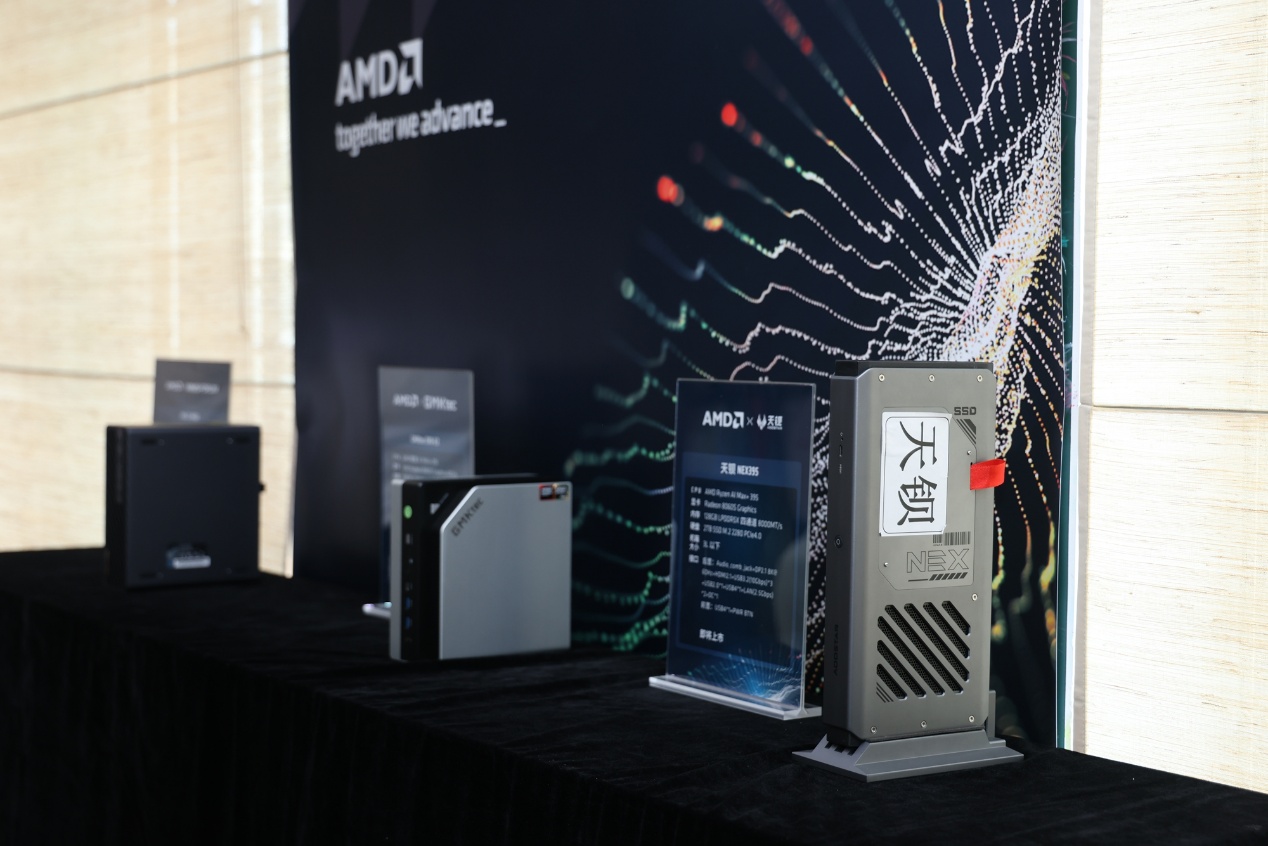 活动现场,作为AMD重要的生态链合作伙伴,包括HP、零刻、六联智能、SEAVIV、Abee 、极摩客、铭凡、天钡等都展示了搭载AMD锐龙AI MAX+395处理器的Mini AI工作站,不仅硬件配置强,外观也很简洁,能够满足初学者、内容创作者等的多样化需求,同时也展示了多款落地垂直行业应用的AI赋能解决方案。