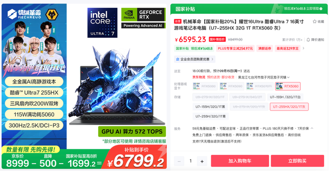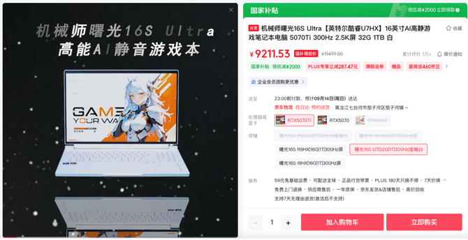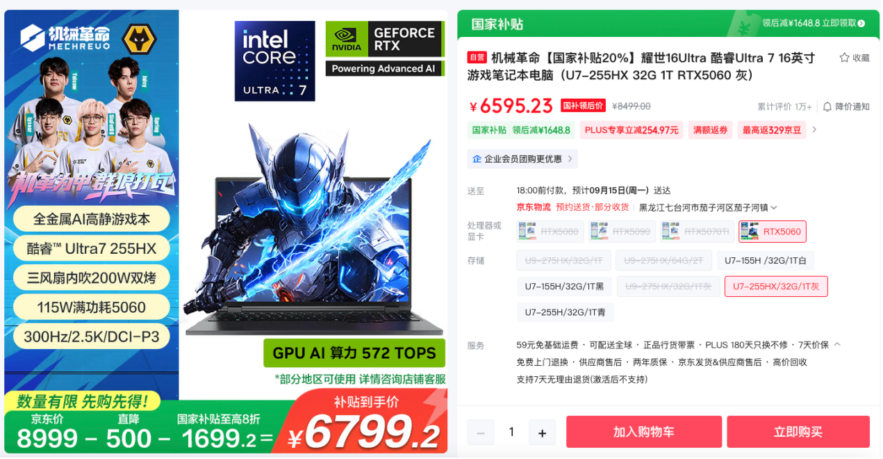 这款游戏本补贴后到手价仅8299元,非常值得冲。
